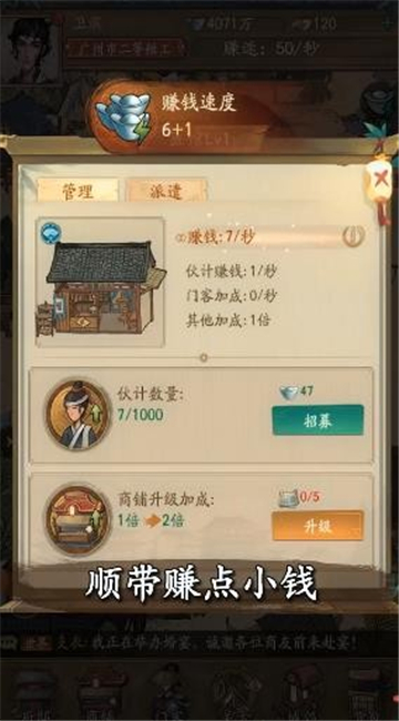 开展新的商业发展模式,培养更多的门客,开更加多的店铺来完成任务吧。