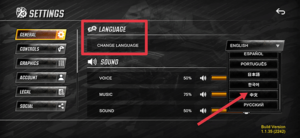接着点击language右侧的语言栏,从中找到中文并点击,这样就能切换成中文了。