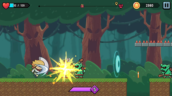 触碰屏幕时,能一边跳跃一边在空中发动攻击,连续点击屏幕还可达成二连跳。