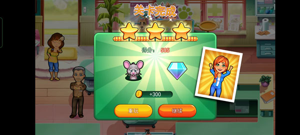 通关成功后就会开始结算得分和金币数量,要记得抓住小老鼠获得金币。