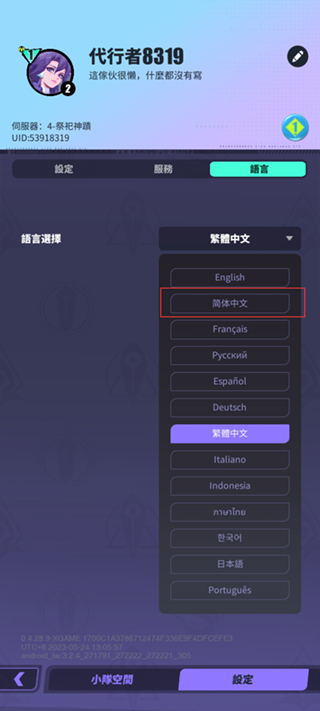 其次在语言选择这一栏点击【简体中文】