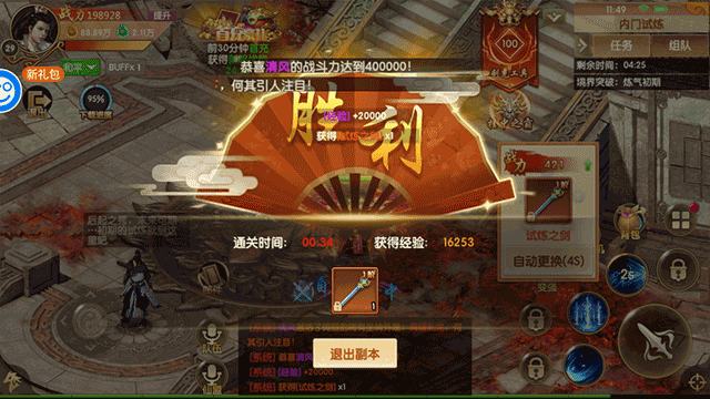 最终玩家取得了胜利,各位可通过选择并点击“退出副本”这一选项来领取奖励。