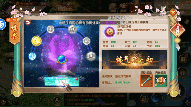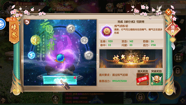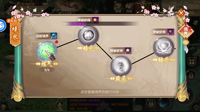 运行游戏后,在获得了第一只坐骑后玩家就可以通过任务提高自己的境界了,在这里选择并点击“当前境界”的区域选项;