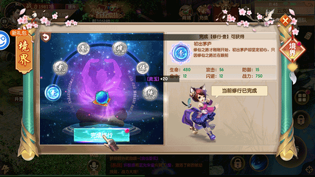 在这里选择并点击“完成修行”的选项;