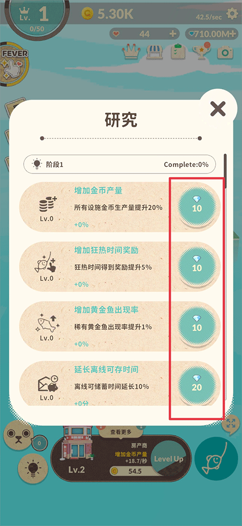 当金币足够多时,可以使用金币对已解锁的房屋进行等级升级