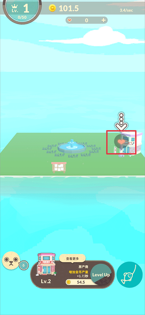 想要将小岛发展到越大,金币是必不可少的,玩家通过一直点击右下角钓鱼按钮即可获得丰富金币奖励
