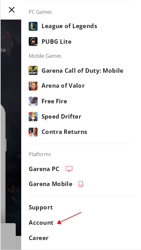 首先我们需要去garena的官网进行注册,点击右上角的三条杠服务。