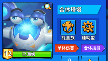 最后我们添加一个万能合成塔塔以方便在场上没有同星级同种类炮塔时能继续进行升星强化,另外合体塔塔的技能在合体时会额外增加攻击力为其他炮塔提供额外的攻击加成。