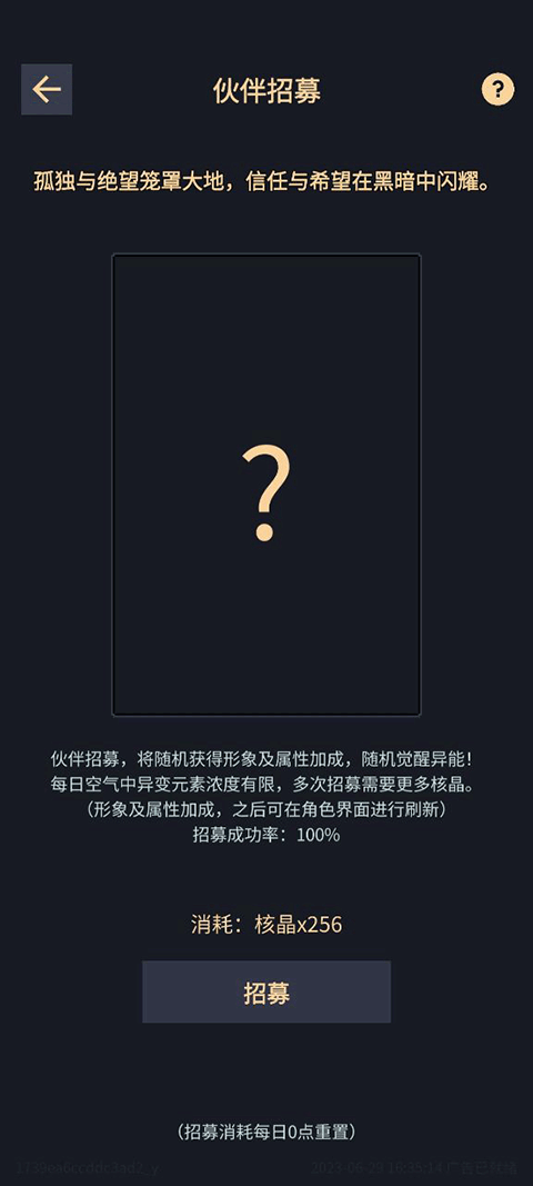 这里不存在抽卡,更没有十连抽,只是单纯的伙伴招募。在这荒芜废弃的世界里,为你安排一位小姐姐与你一路相伴。