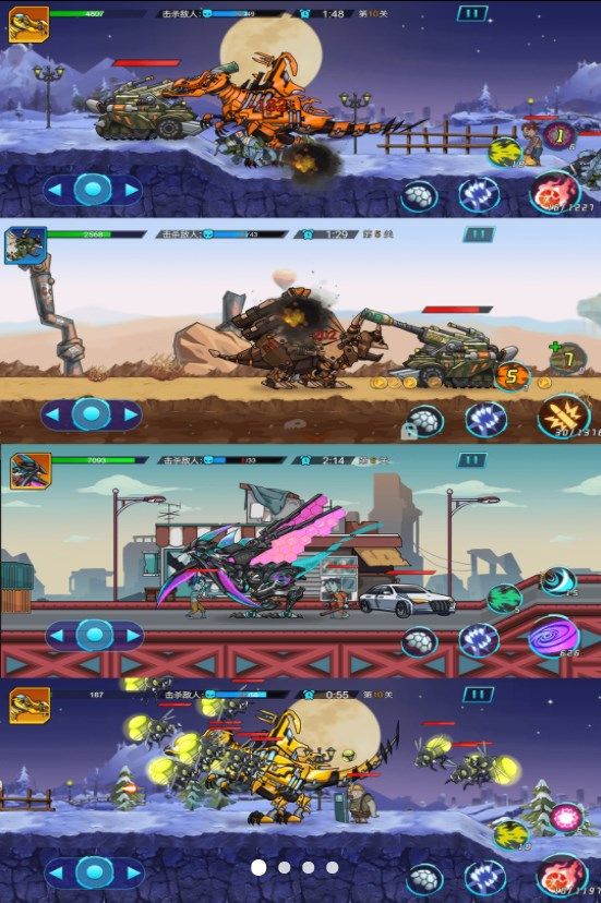 合理使用机甲的武器和技能,以击败强大的恐龙敌人。