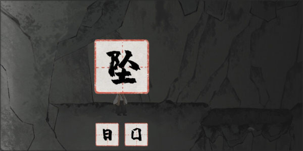 然后我们再次进行组合,人、土、耳朵旁就可以组合成坠字,我们把坠字拖到前面的石头上我们然后从上面下去就可以通关了;