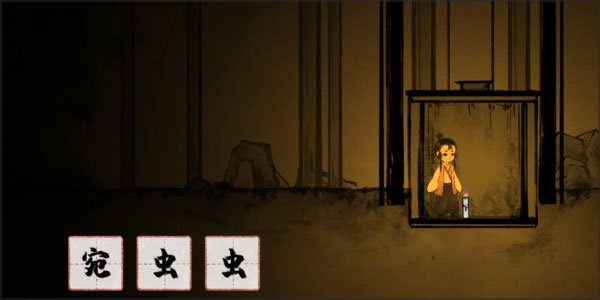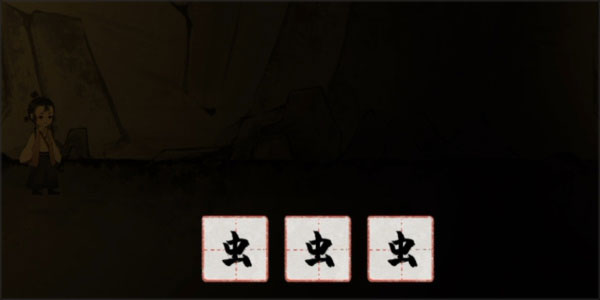 进入关卡后,点击三个萤火虫即可获得3个“虫”字,继续前进会看到火光,点击后可得到“火”字。