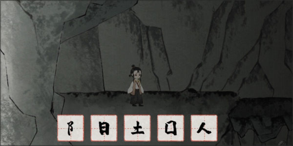 进入山洞后,我们会遇到一名囚犯,完成相关剧情后点击囚犯,即可获得一个“囚”字。接着,我们将“囚”字拆分为“人”字和“口”字。