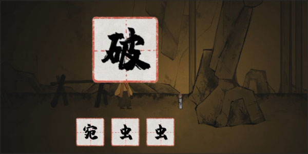 我们把碗字进行分开,然后继续往前走,我们会发现前面有石头阻挡了我们的道路,我们这时候需要用石字和皮字进行组合获得破字滑动到石头上我们就可以继续前进了;