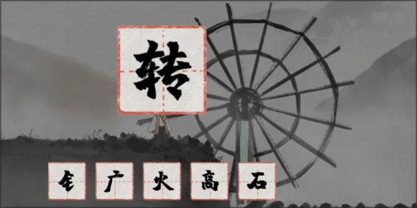 开路之后我们继续往前面走就可以看到一条河,我们需要用车字和专字组合成转字拖动到旁边的水车之上,桥就会自动升起来,我们从桥上走过去就可以通关了;