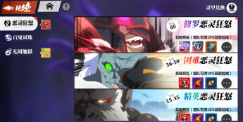 “百鬼试炼”玩法也很有挑战性!这个玩法有6个试炼副本,每天开启一个。个人觉得这个玩法最能考验玩家综合水准。镇魂将试炼考量的是寄灵人总灵海值,包含角色等级提升的灵海值,战斗中所有战斗均能出战生效,过程十分之燃!