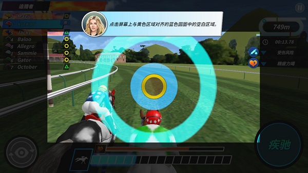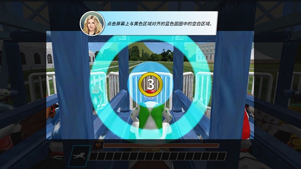 比赛过程中,你会进入一个需与马保持同步的阶段。点击屏幕上蓝色圆圈内与黄色区域对齐的空白部分。
