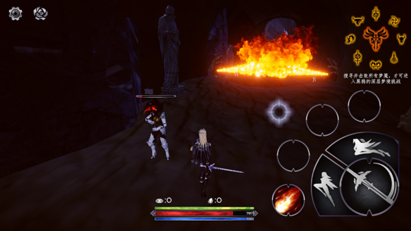 看完后即可进入游戏,游戏采用了经典的横版操作,屏幕左边控制移动,右边则是攻击、技能等键位;