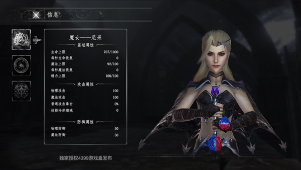 点击左上角玫瑰花按钮可查看角色信息,玩家在这里可以给角色穿戴装备武器、以及升级技能等;