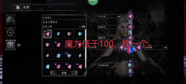 生命属性方面,初始配置为三条生命属性。攻击属性上,有两条物理攻击属性。魔力属性则为一条魔力上限属性。当魔力值低于100时,将其中一条属性更换为魔力回复属性,此时整体属性配置变为(3生命、2物理攻击、1魔力回复)。若角色血量低于1800,再更换一条属性为魔力回复属性,属性组合调整为(2生命、2物理攻击、2魔力回复)。当血量降低至低于1400时,把其中一条属性换成回血属性,即属性呈现为(1生命、2物理攻击、2魔力回复、1回血)。要是血量进一步降低到低于1000,再更换一条属性为回血属性,最终属性配置为2物理攻击、2魔力回复、2回血。