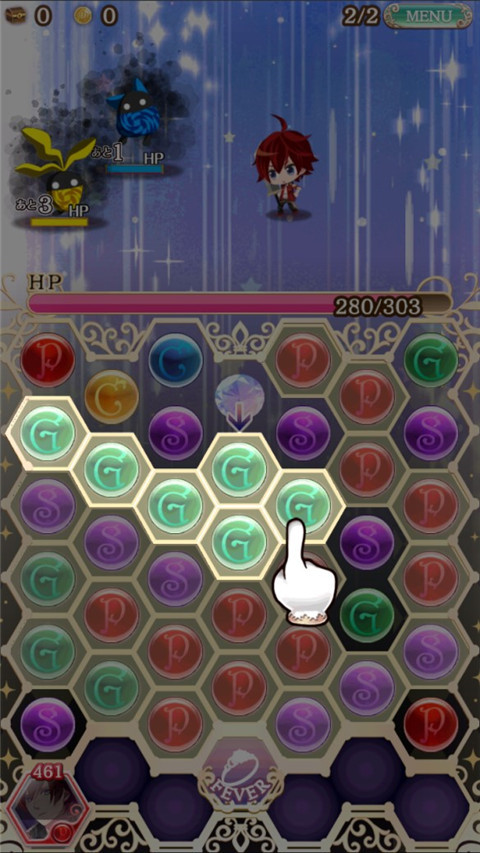 该状态下,系统会自动把相邻的同属性宝石圈起来,玩家只需要轻轻点击,该片的同属性宝石自动消除,可以快速的消除大量的宝石。瞬间将攻击力提升好几倍。