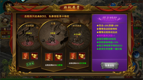 特权悬赏:完成相对应的任务之后就可以领取大量的元宝以及红包。
