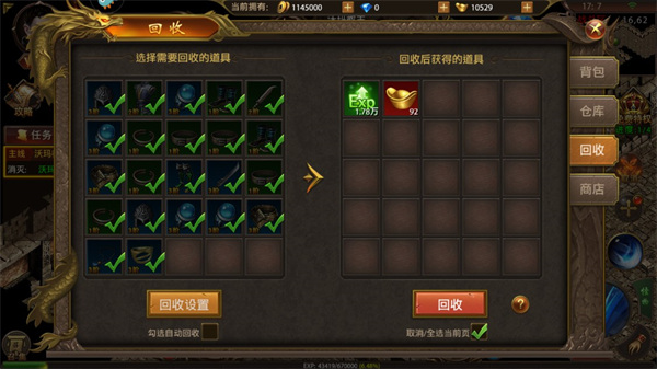 无需的装备可进行回收,从而换取元宝,同时,这些装备还能够转化为你的战力。