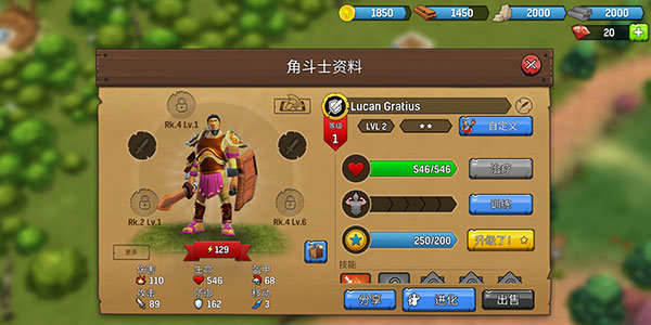 经过升级,角斗士在各项属性方面均会得到一定程度的提升。