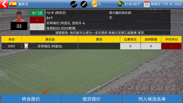 进入游戏后,我们选择上方被物色的球员