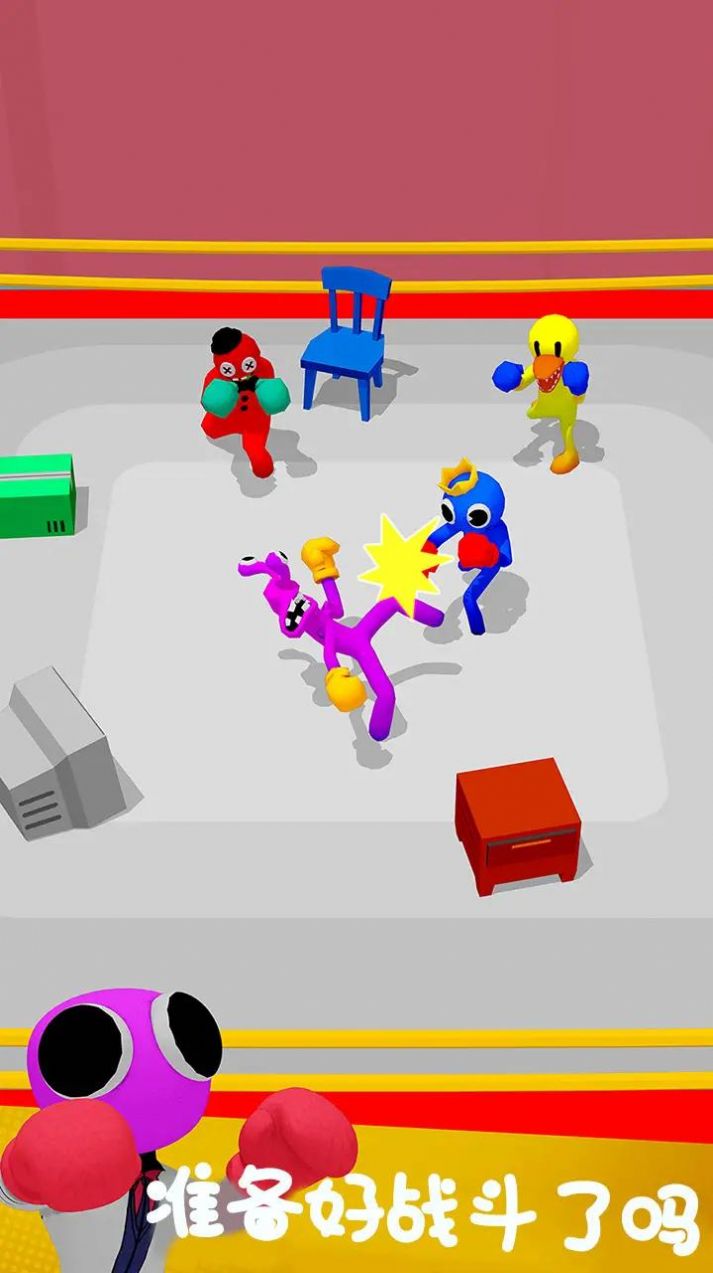 在此处,全体彩虹朋友纷纷戴上拳击手套,开启激烈的拳击格斗较量,努力解锁更多拳击相关道具,于指尖展开热血的PK格斗,目标是将所有对手逐一消灭。