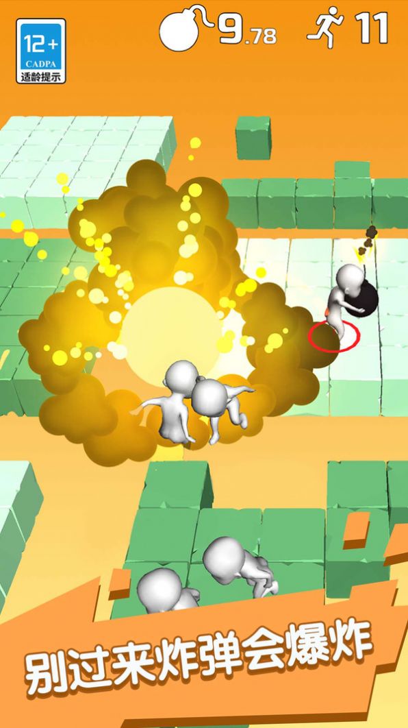 摧毁障碍物并歼灭敌人,在此过程中需留意,别被炸弹的火花伤到。
