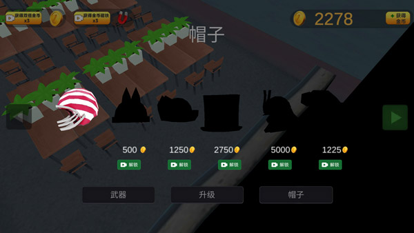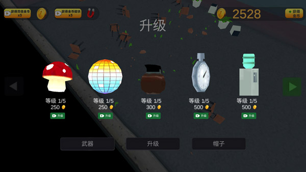 在升级页面点击后,便能看到各式各样的道具,玩家可自主挑选道具来实现升级,这能为关卡挑战带来更多优势!