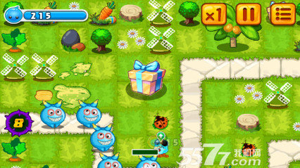为了保护你的萝卜,你必须在怪物必须经过的道路上种植各种炮塔。游戏中不同的道具有着不同的效果,例如:闪电,冰冻,减速,头晕等效果可以让你杀死怪物!