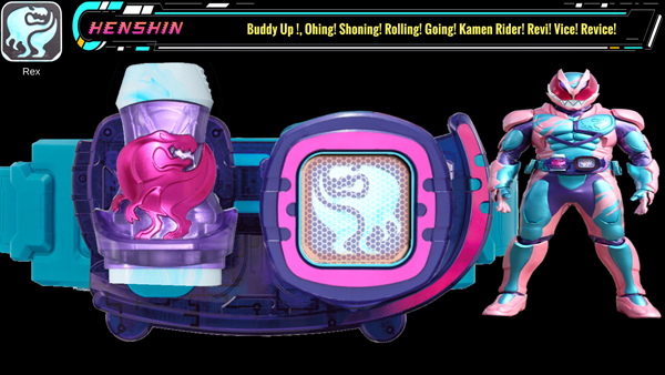 使用“Revice驱动器”,配合“暴龙罪恶印章”变身的基本形态。