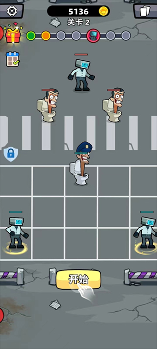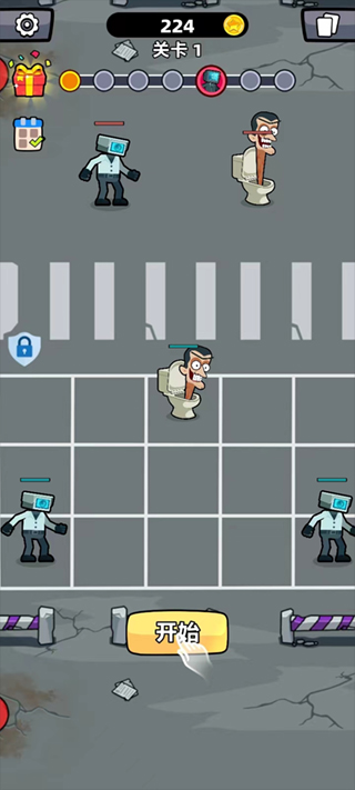 首先,启动程序并注意对方的参赛人数;接着,点击屏幕底部的图标,并将中央的马桶人物移到顶部。