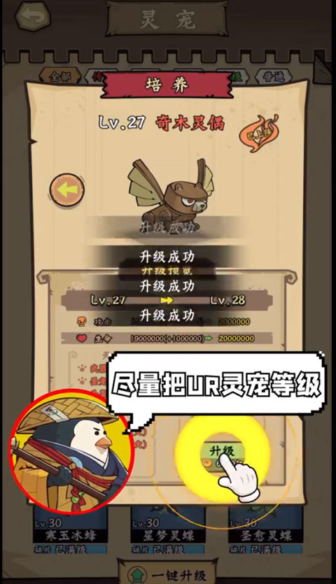 最后一步是提升你的宠物的级别,尽可能将UR宠物的等级提升至10级以解锁所有天赋。完成上述培养过程后,你可以通过限时宝箱抽取UR级别的武学或宠物,从而快速提高战斗力。