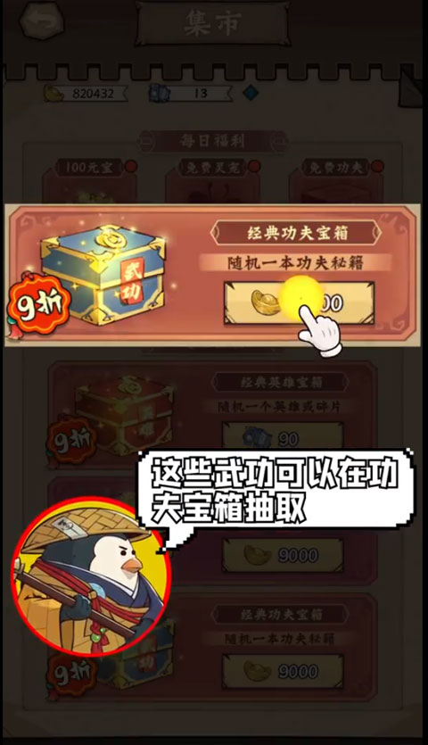 玩家前期一定不要用元宝抽限时宝箱这里只会抽到重复的UR武功或灵宠。