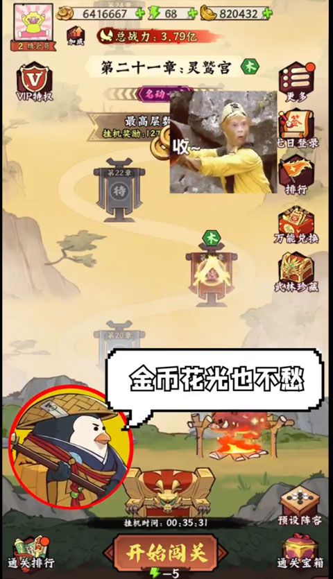 这时候就可以来打占山为王进行发育,占山为王的收益,不仅与扫荡闯关相同,而且还和额外的占山积分宝箱可以获得。