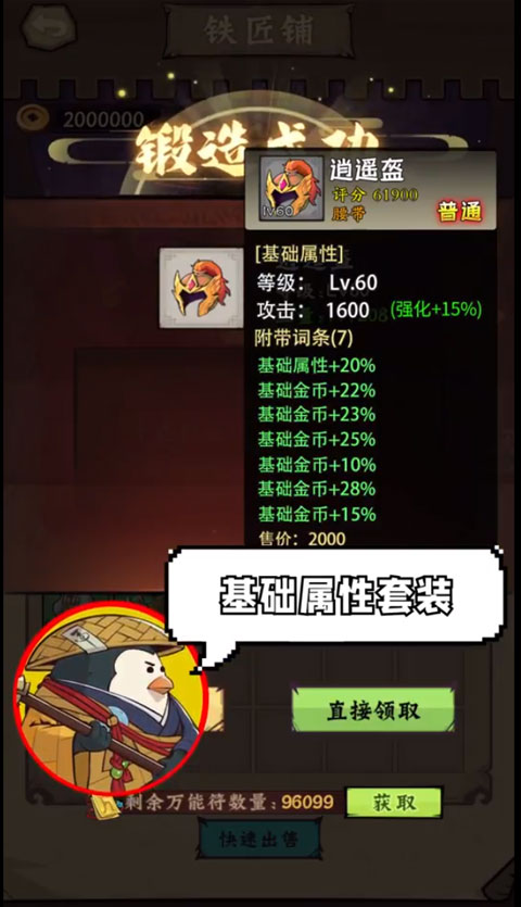 游戏中的装备系统设计独特且充满乐趣。每个装备都拥有独特的五行属性和独一无二的效果;它们不仅有强大的基础属性,还具备强力的词条效果;装备词条玩法多样,玩家可以通过打造或合成来获得随机词条属性,也可以进行词条转移;此外,还可以通过搭配不同的装备来实现各种效果,如基础装备属性套装、技能属性套装、闯关金币套装和挂机金币套装等。