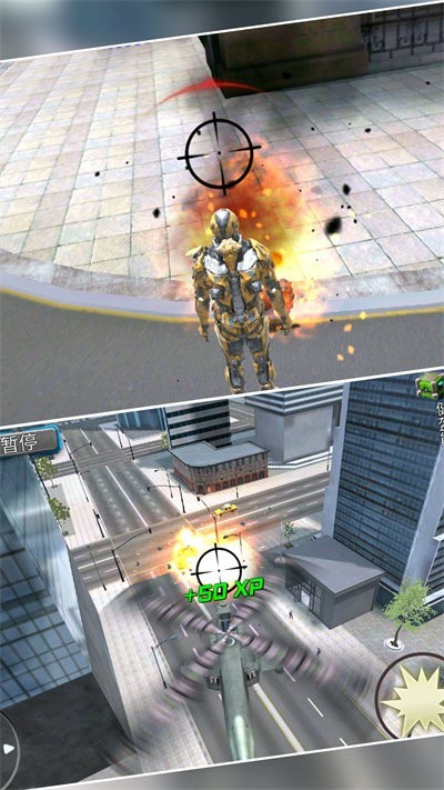 游戏内含多种战斗场景,包括城市高楼、废墟战场、太空基地等,战斗体验层次分明;