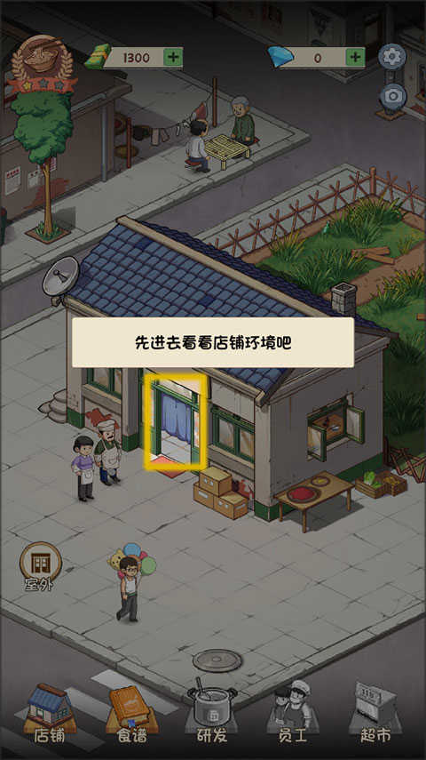 下载安装好爸爸的面馆,进入游戏,首先点击店面进入看看店铺环境。