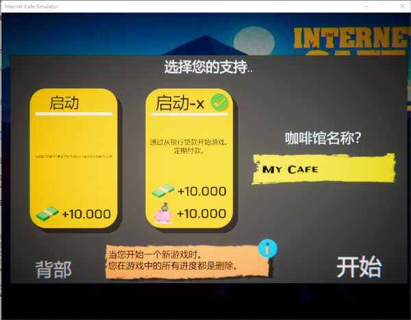 选择游戏开始前的条件,和你的网吧名称,然后点击开始;