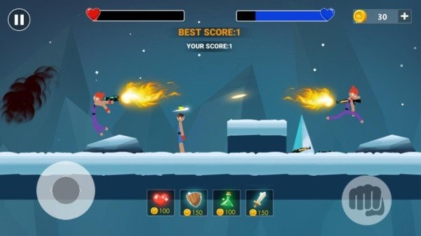 单人闯关模式:玩家需要操控火柴人在不断变化的关卡中跳跃、攻击、躲避障碍,完成关卡目标;